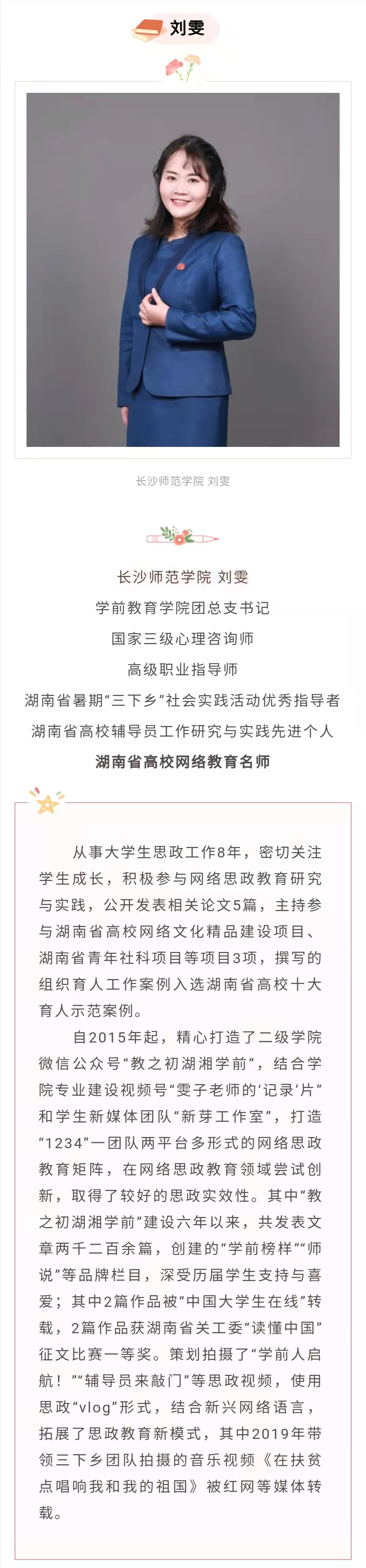 上一条:谌佳:怀化学院教育科学学院团总支书记、讲师、第二批“湖南省高校网络教育名师培育支持计划”入选者