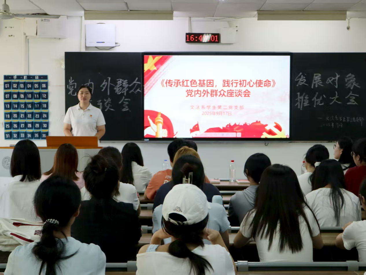 (通讯员 赵晶晶 周李羽檬 席琴)9月17日下午,文法系学生第二党支部在树达楼107教室开展以“传承红色基因,践行初心使命”为主题的专题研讨会。文法系学生第二党支部书记彭娇出席会议,会议由文法系学生第二党支部学生副书记谭思主持。