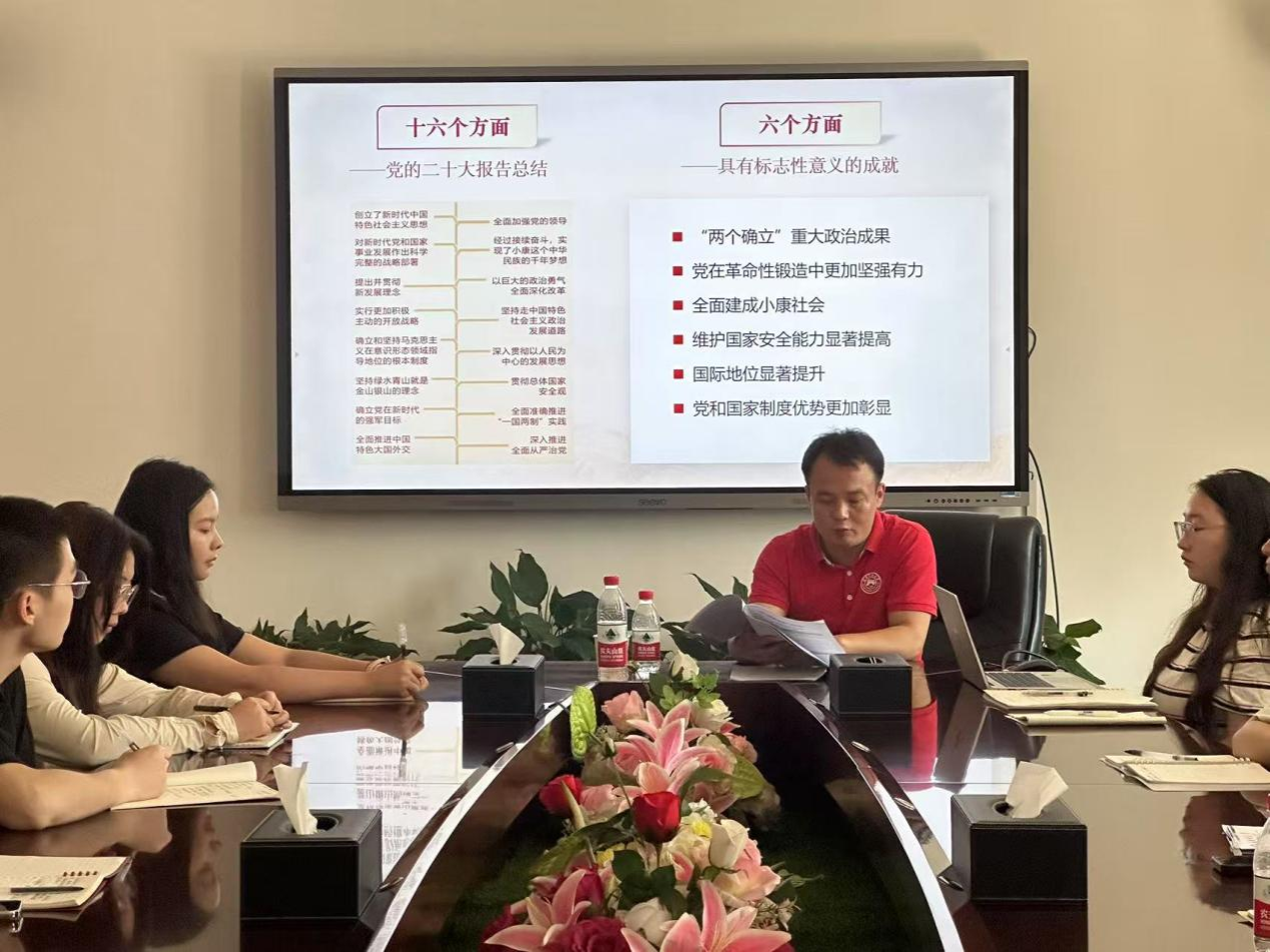 (通讯员 文思宇 骆宇轩 龙语眸)5月26日中午,我院艺体系学生党支部在办公楼302会议室开展以“深刻领悟‘两个确立’的决定性意义”为主题的党课学习。院党委副书记赵鑫海担任党课主讲人。