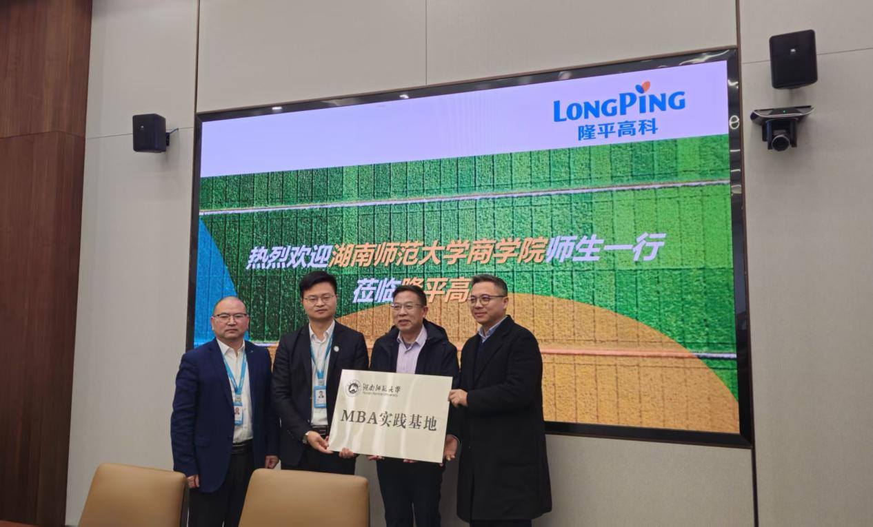 上午,参访团队与隆平高科中高管展开深度座谈,正式挂牌“湖南师范大学MBA实践基地”并达成三项核心合作共识:一是依托企业全球试验基地、援非项目等优质资源,搭建国际化实践育人平台,助力研究生深度参与跨国农业项目运营等实战环节;二是联合开发农业科技产业化、国际农业合作等领域教学案例,将企业实战经验转化为课堂资源;三是聘任企业中高管为MBA实践导师,指导学生课题研究,并计划联合举办粮食安全主题创新创业论坛,搭建产学研协同创新平台。