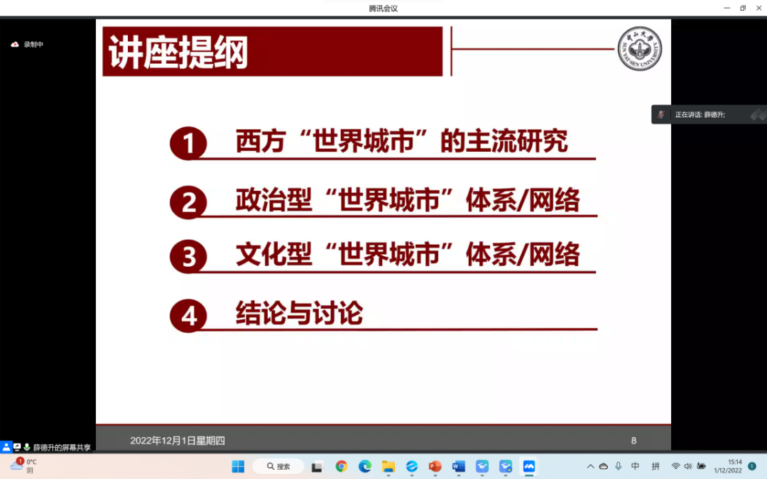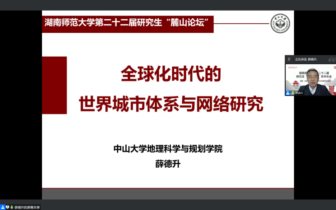 薛德升线上讲授全球化时代的世界城市体系与网络研究